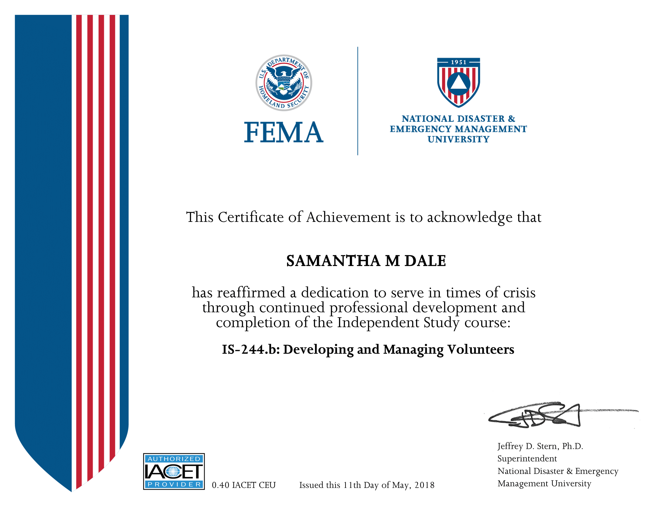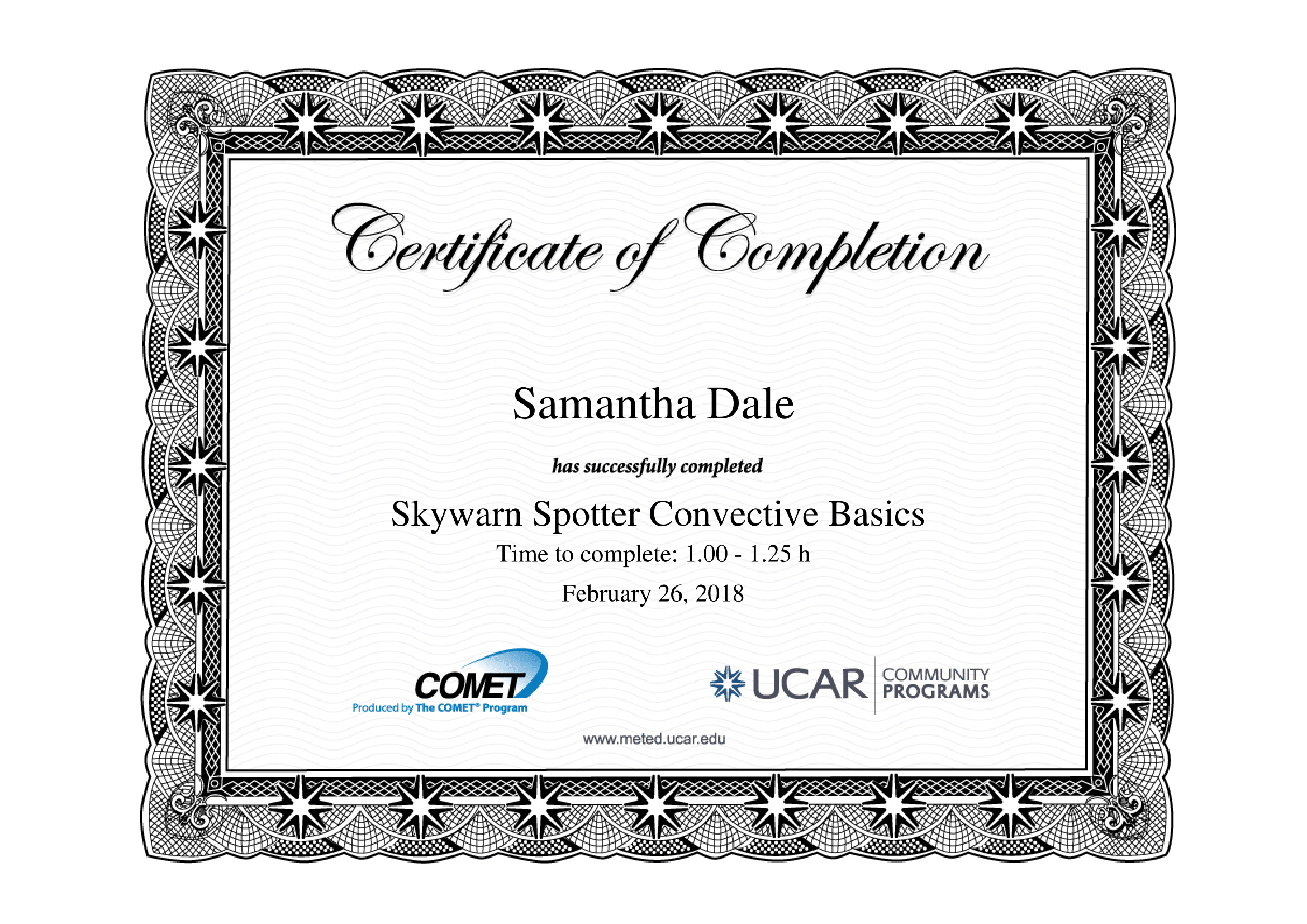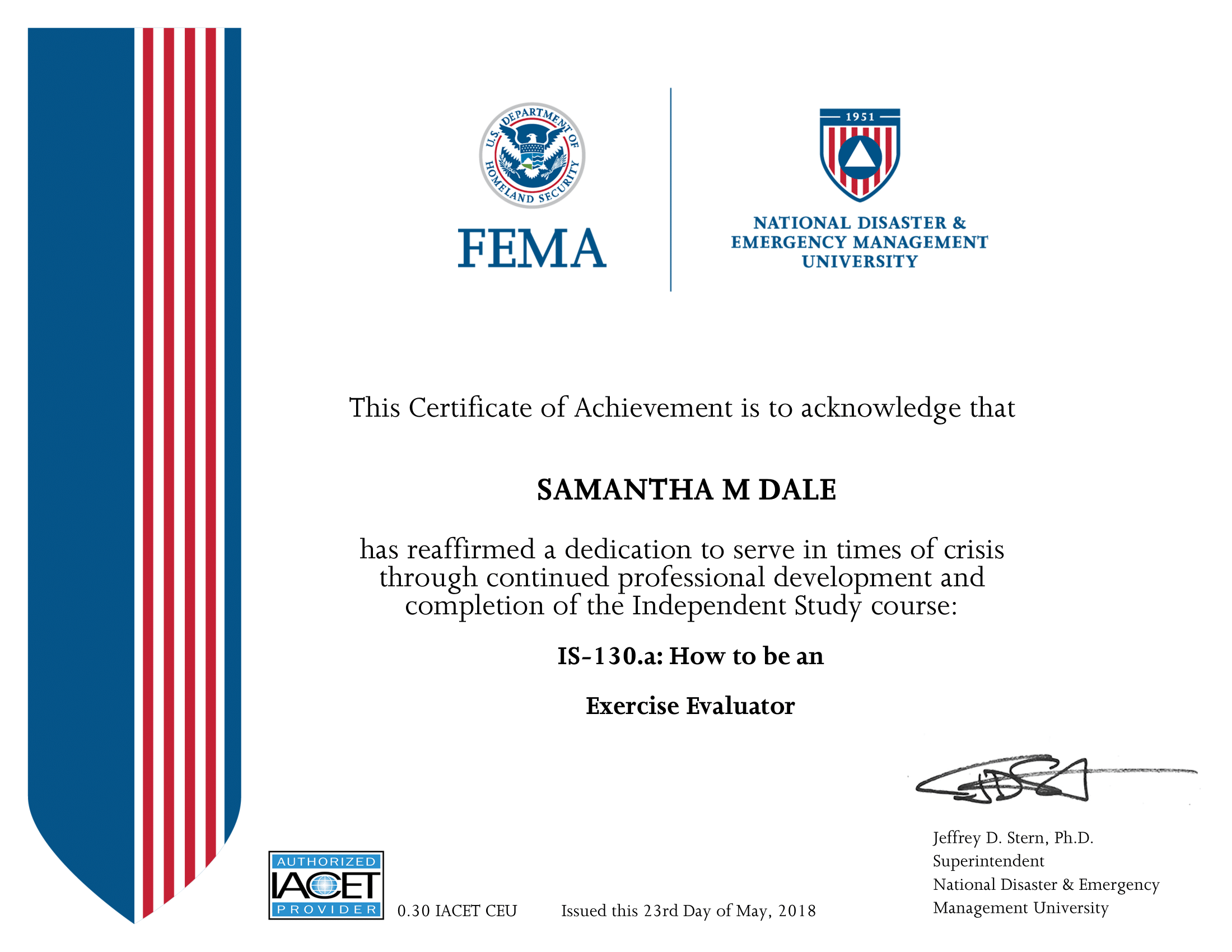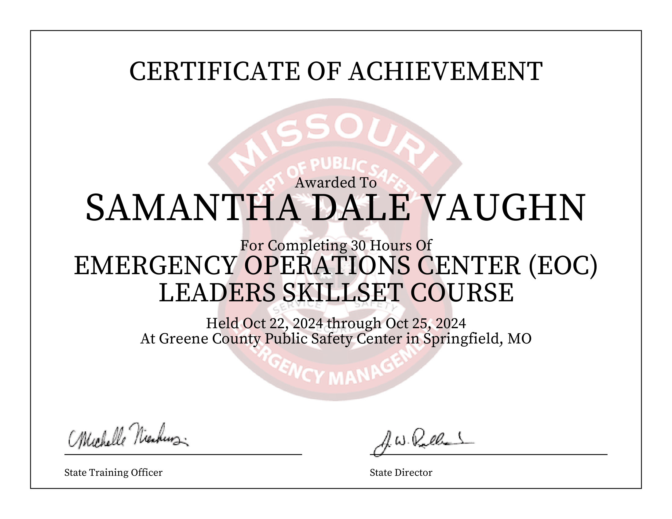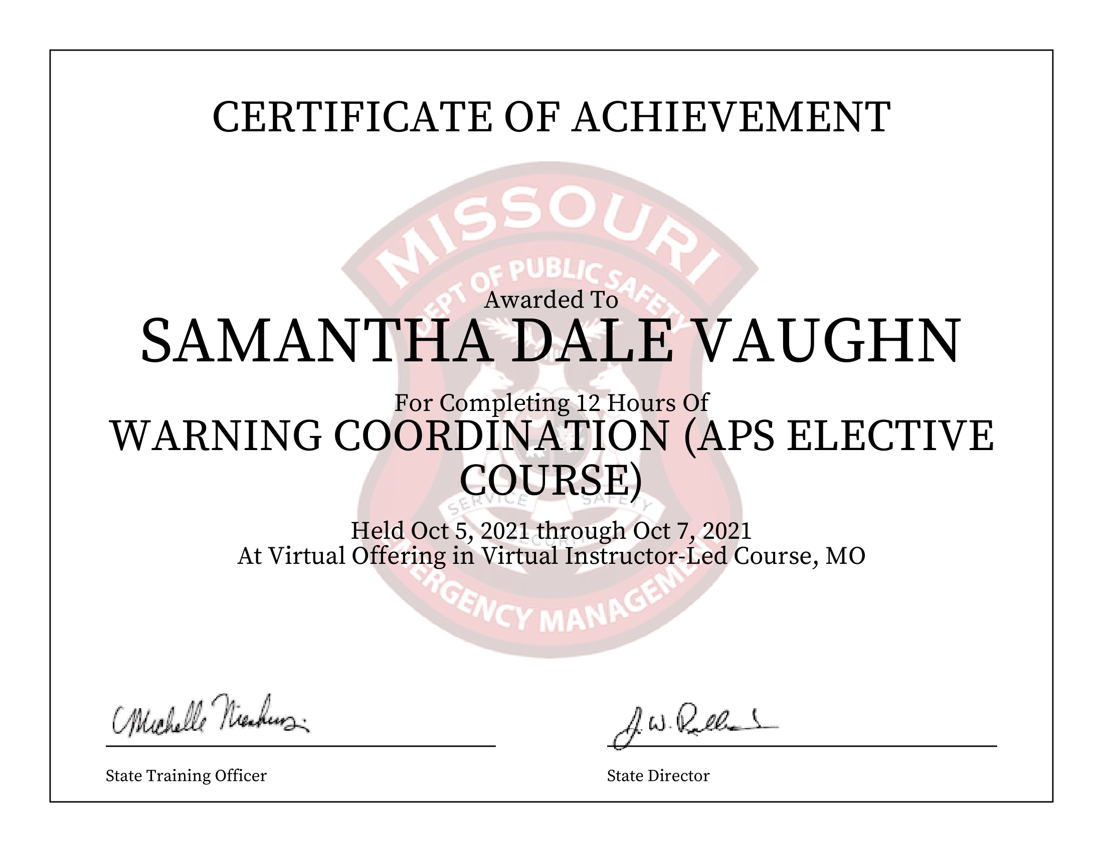 *Samantha’s certificates fall under her maiden name Dale, former married name Henley, and/or her new last name Dale Vaughn.