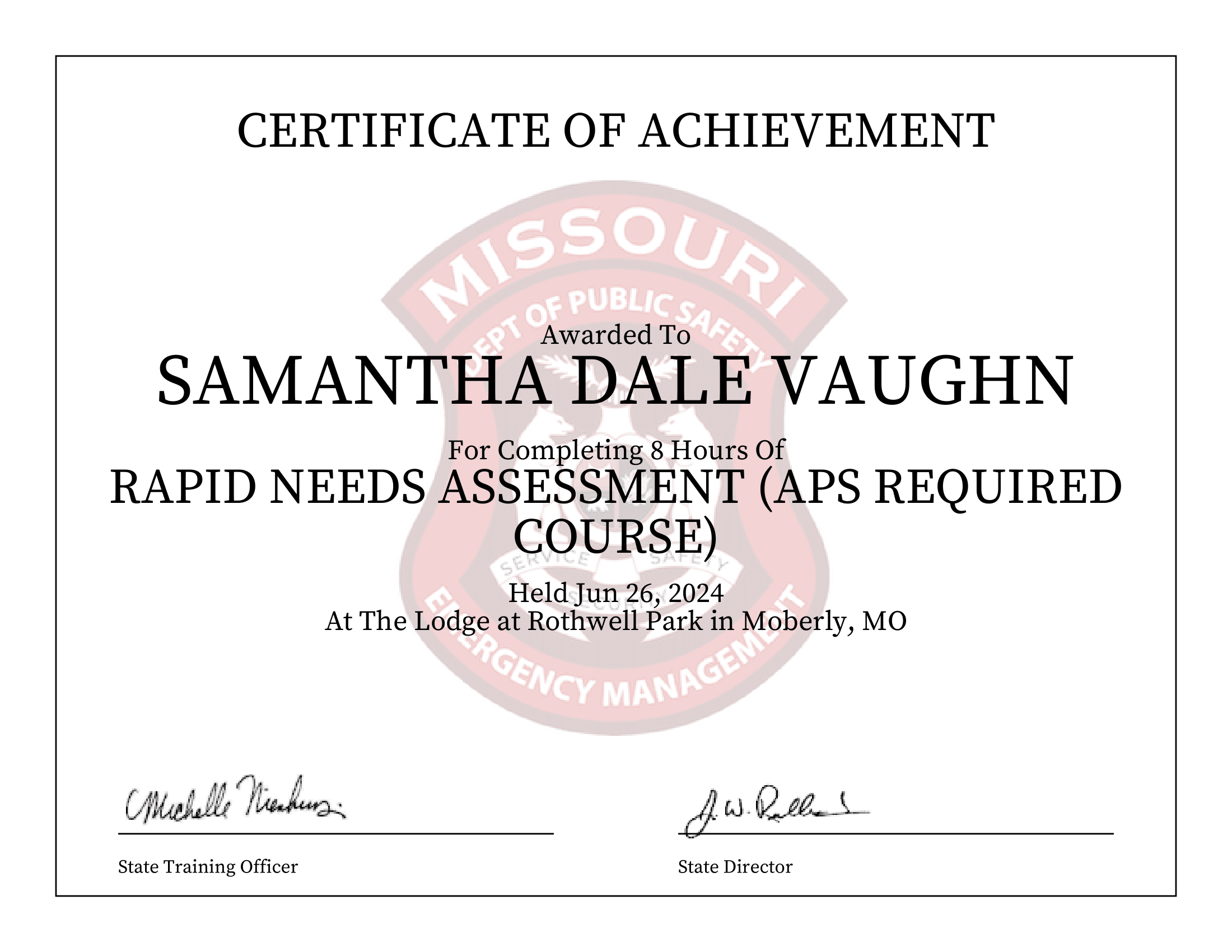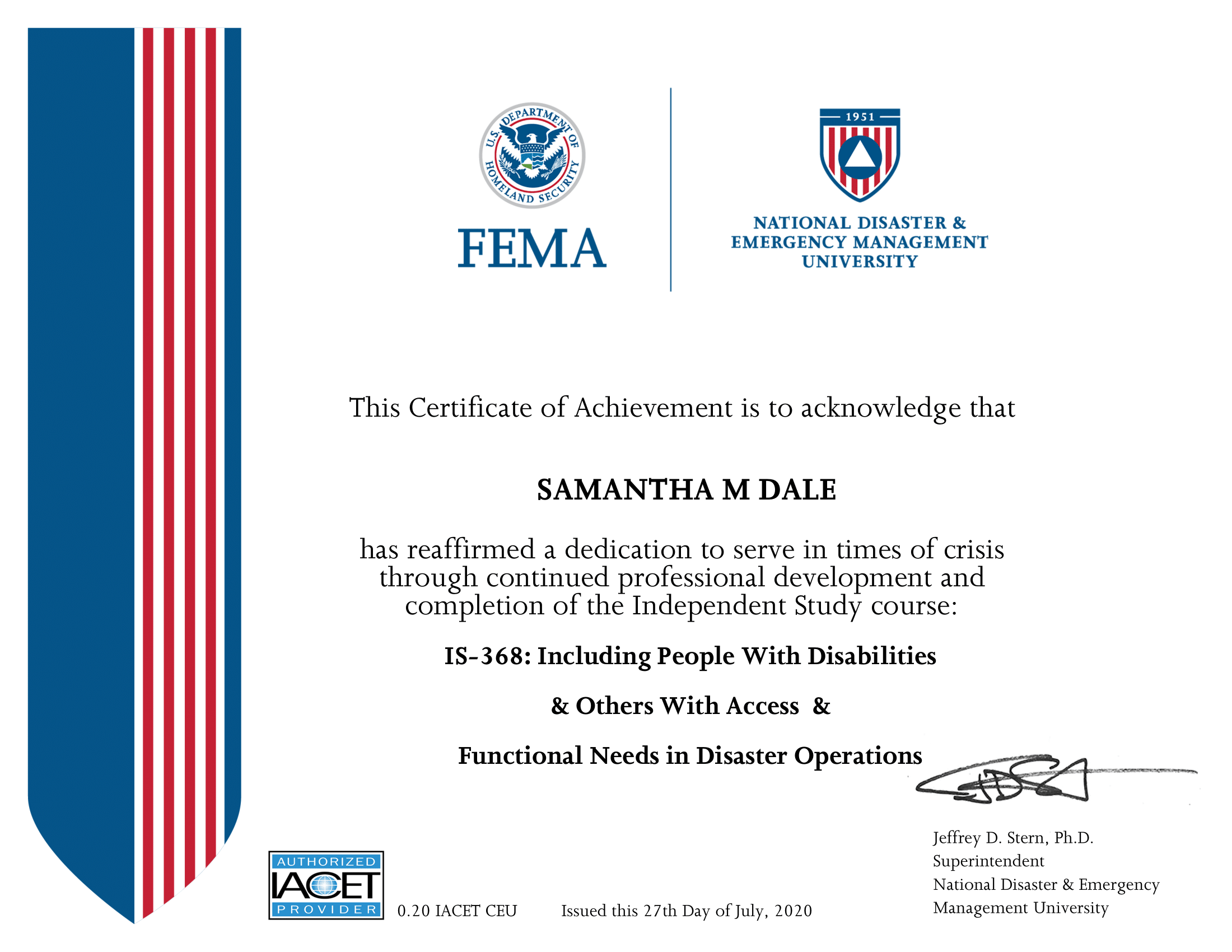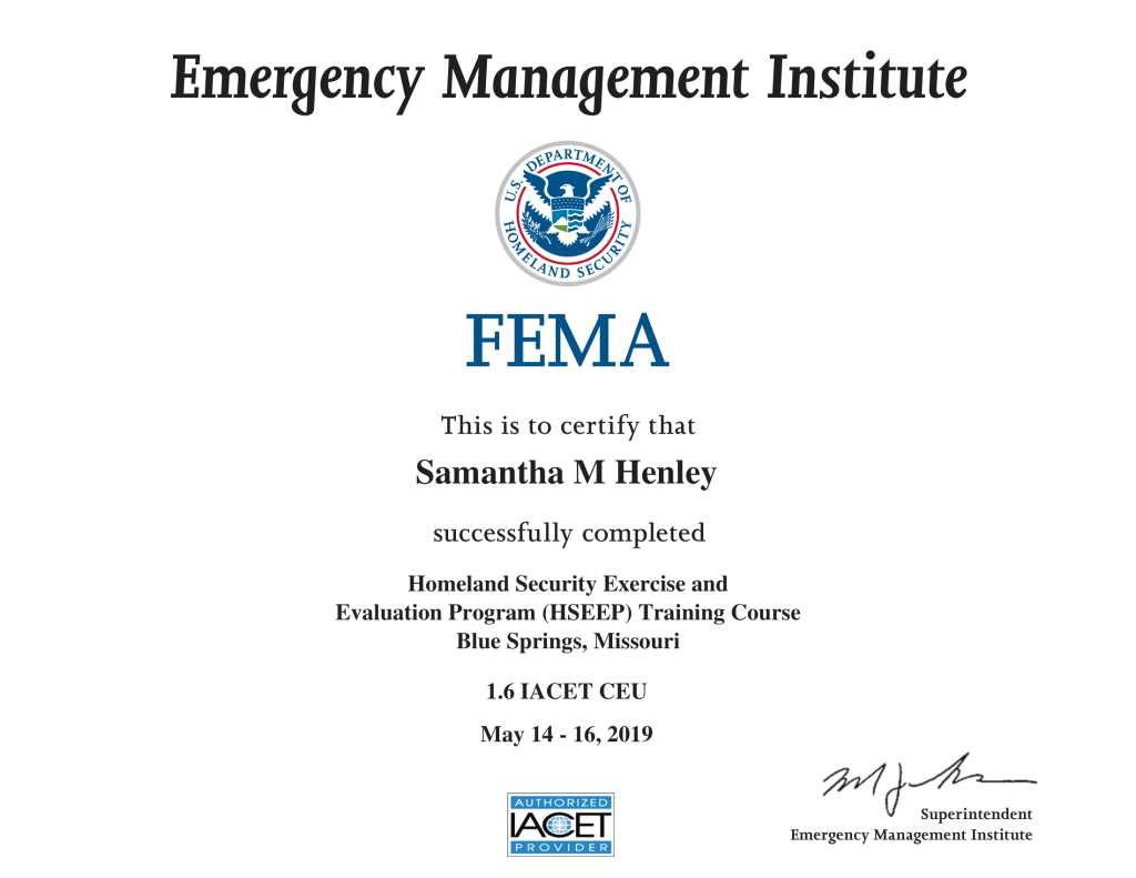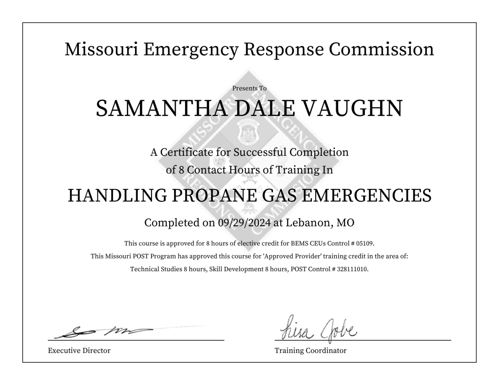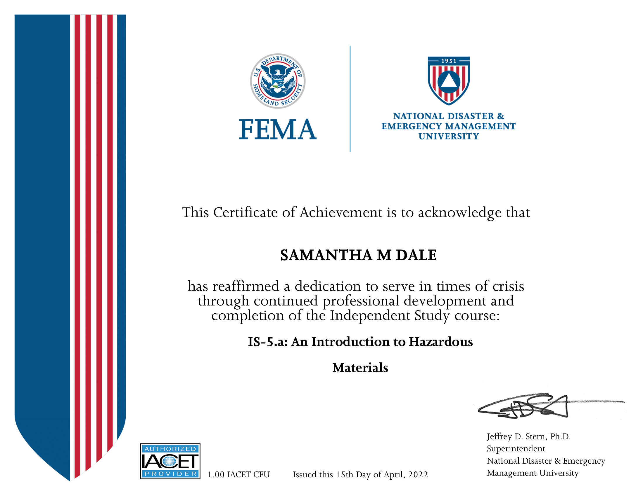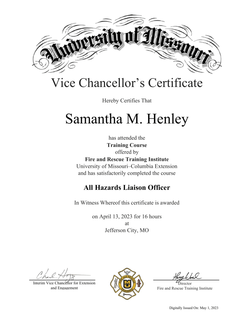 *Samantha’s certificates fall under her maiden name Dale, former married name Henley, and/or her new last name Dale Vaughn.