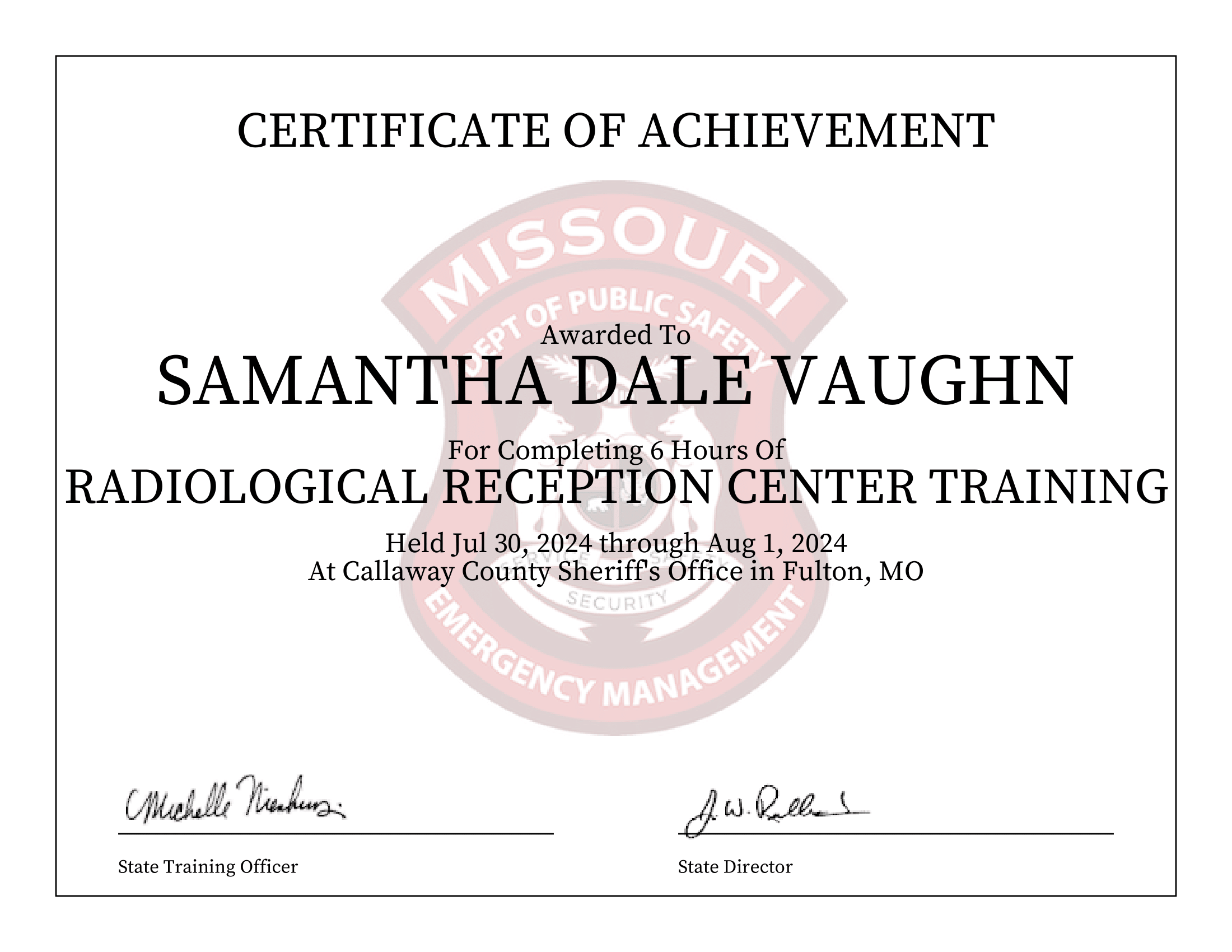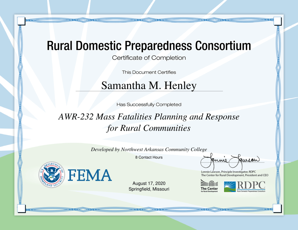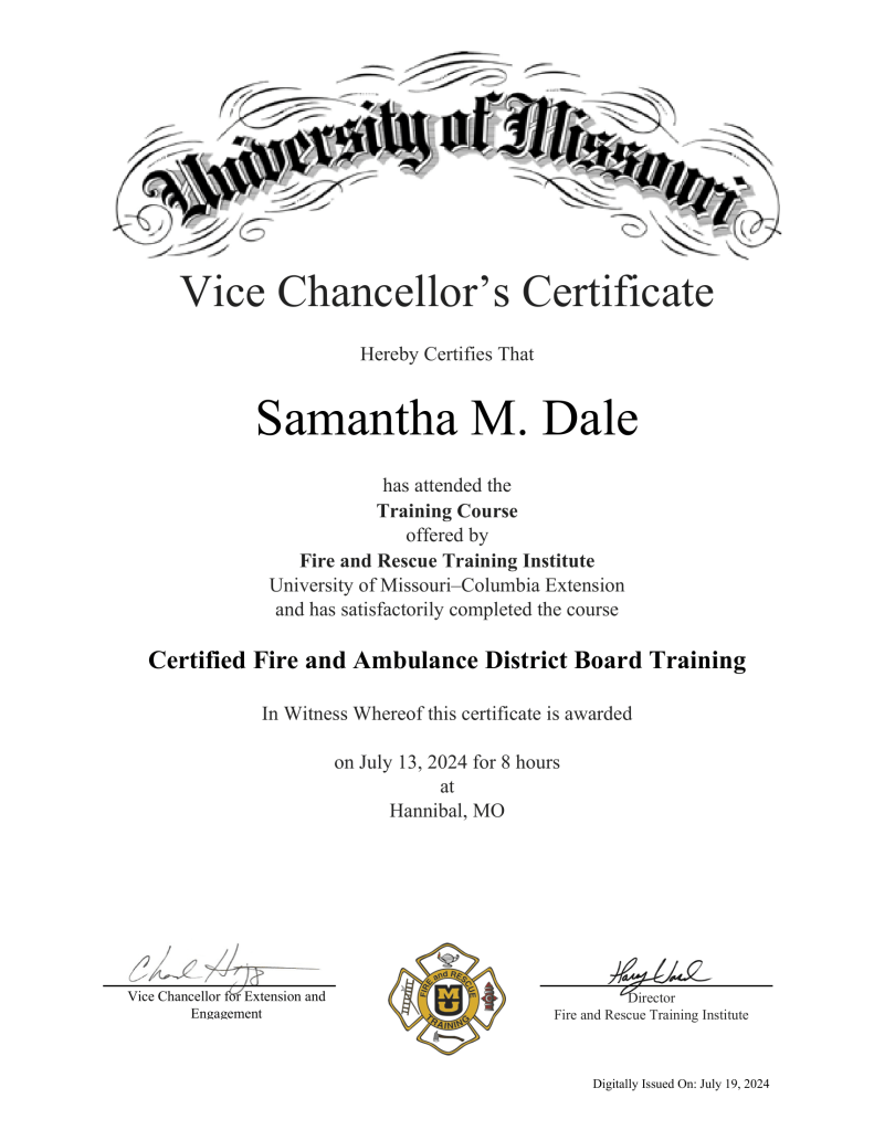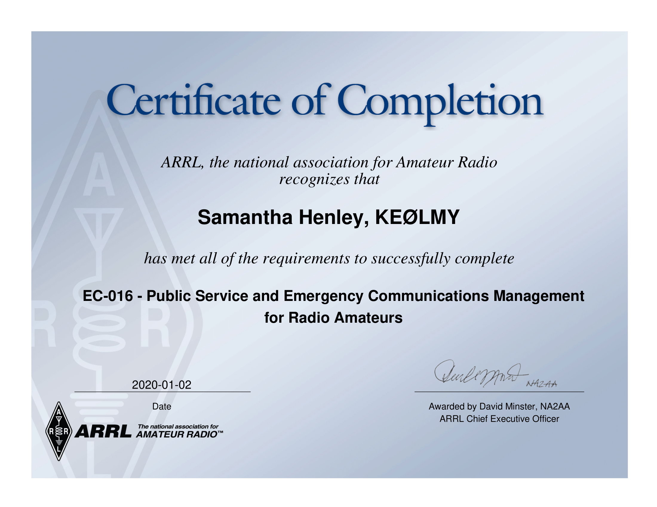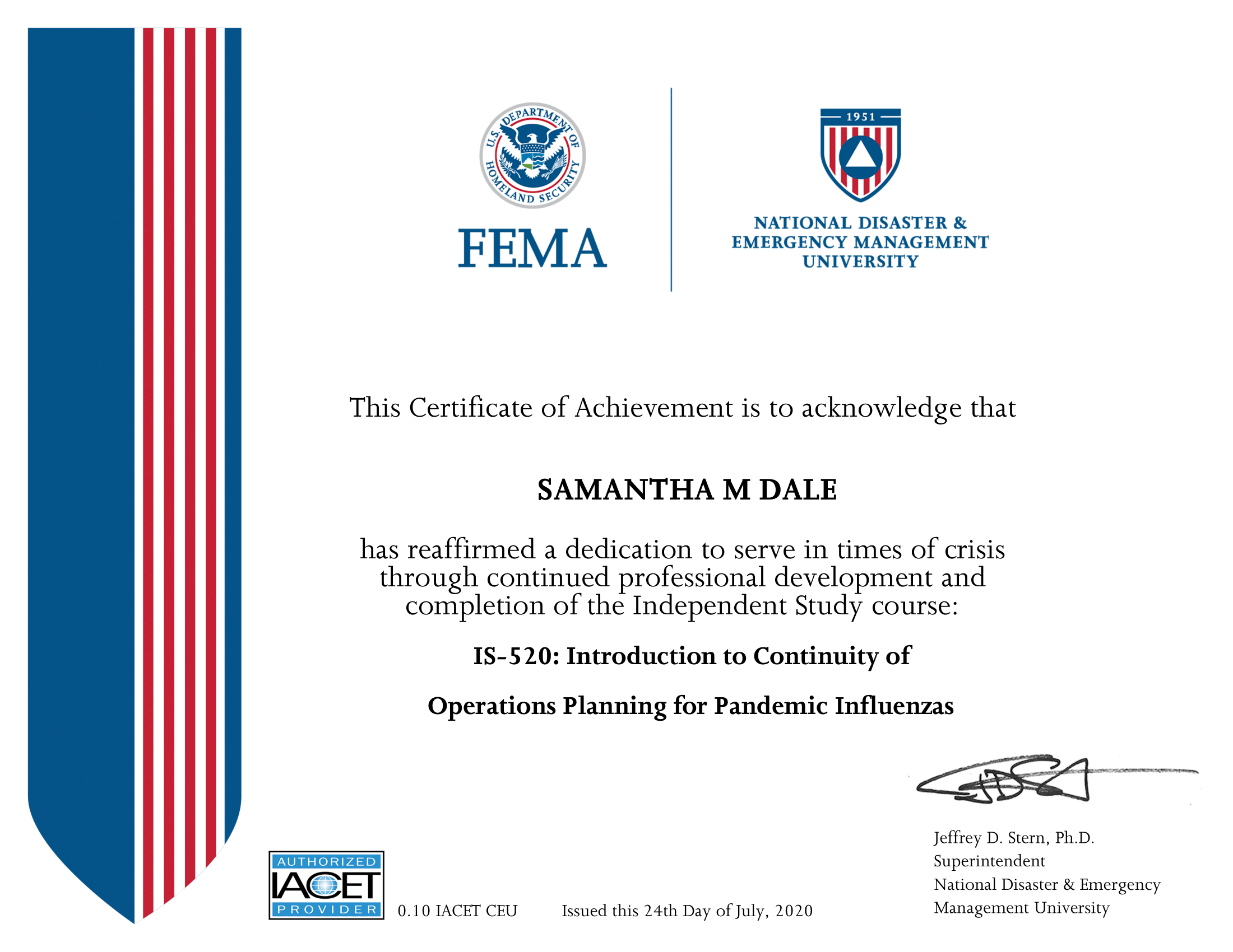 *Samantha’s certificates fall under her maiden name Dale, former married name Henley, and/or her new last name Dale Vaughn.