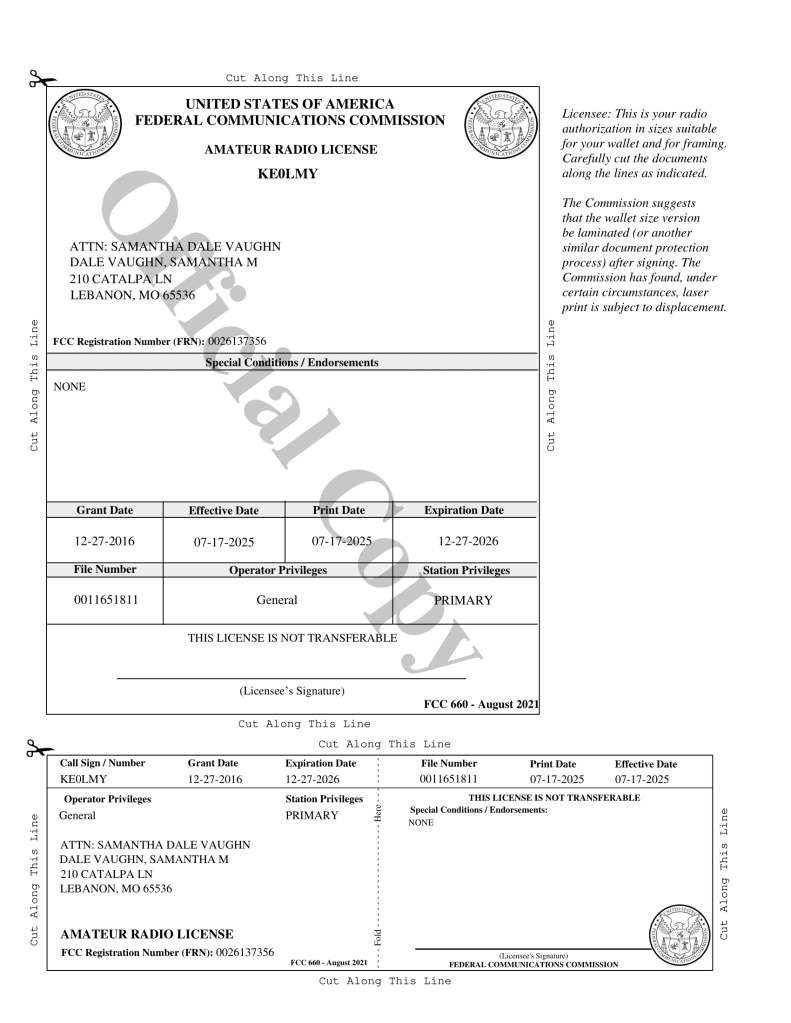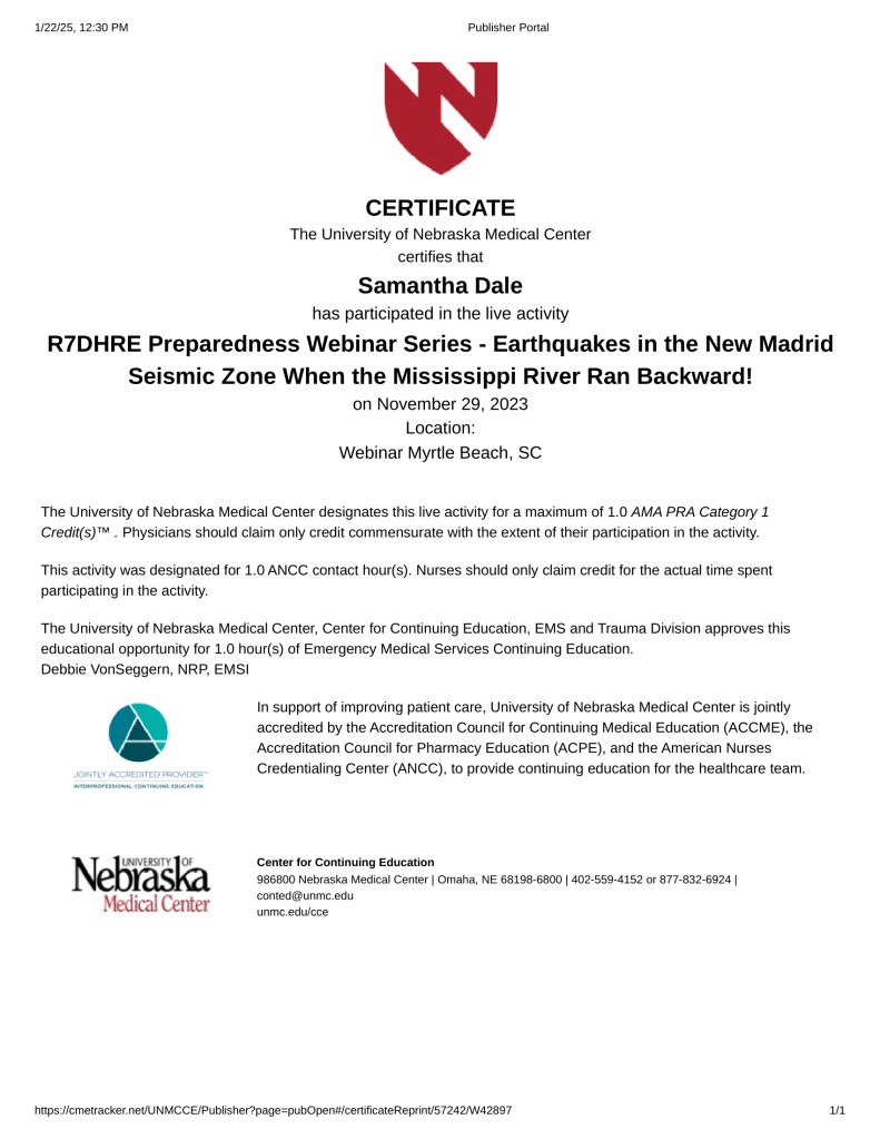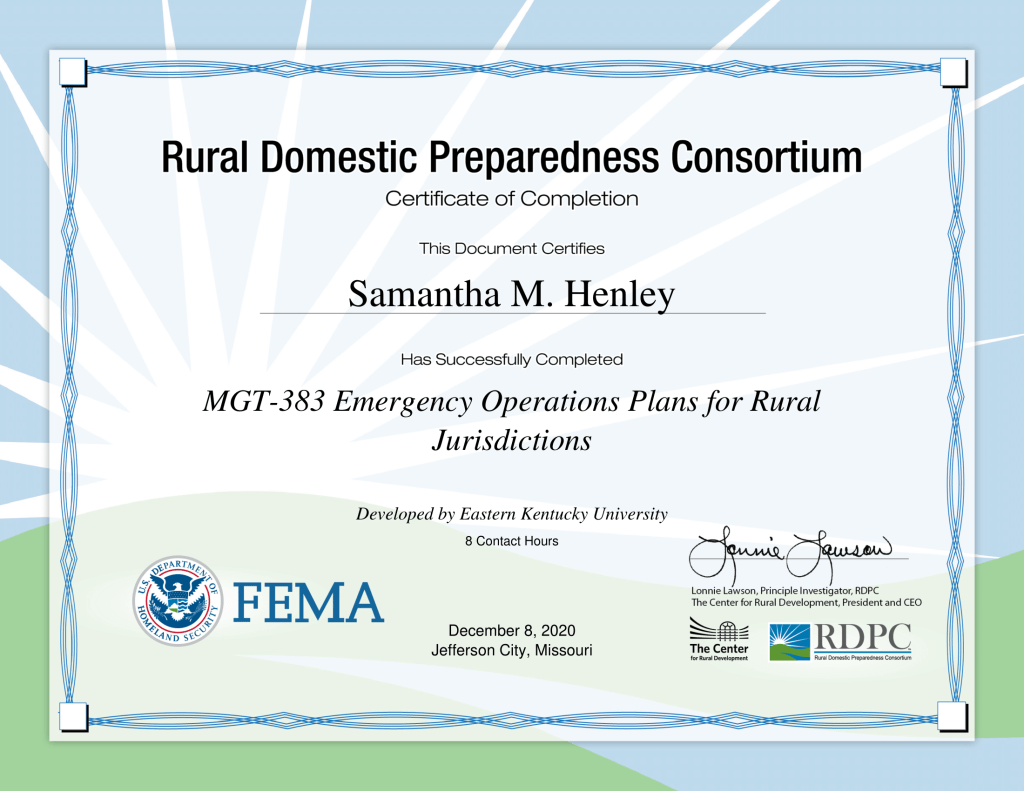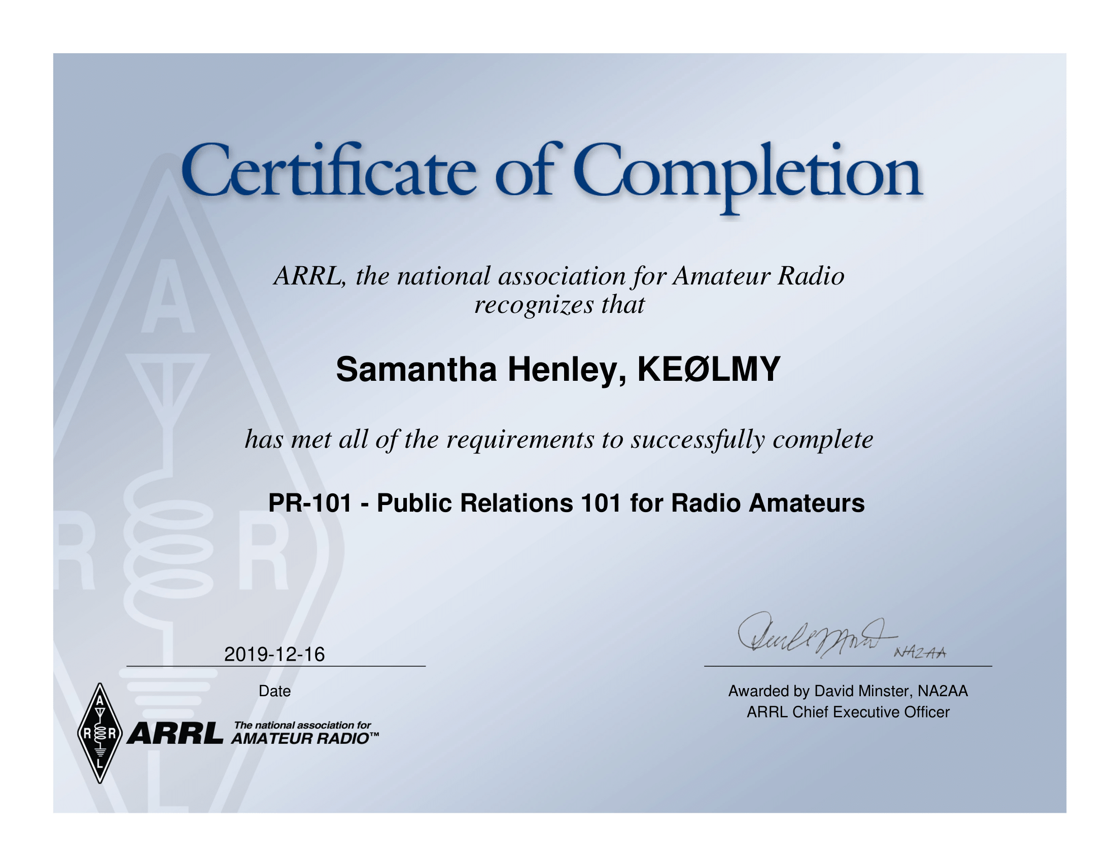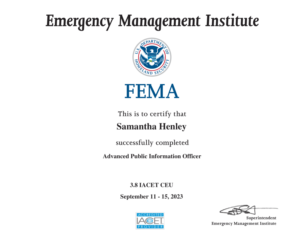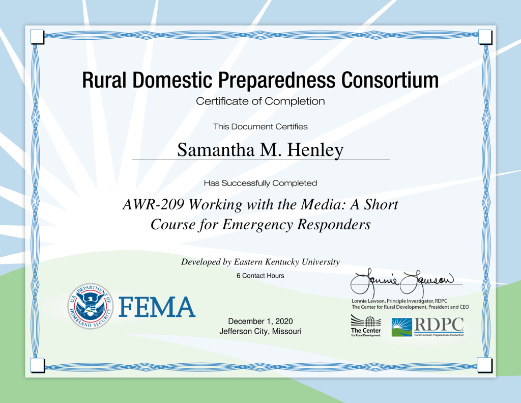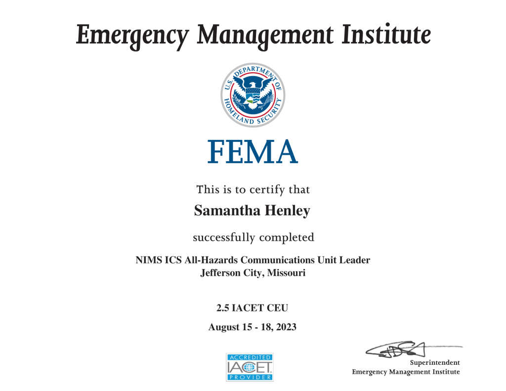 *Samantha’s certificates fall under her maiden name Dale, former married name Henley, and/or her new last name Dale Vaughn.